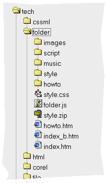 The page "index_dynamic.htm" is XHTML Frameset. The left frame points to "sitemap.asp". The script instantiates the VBScript classFileSystemTree class. The object loads its default properties by the class_initialize sub-function, overwrites these by the "config.xml" node-texts (if provided) and assigns it to its private members via the property let methods. (Private members, which are global to the class but shielded to the outside, use the "m_" prefix.) Then, the method "create" is called. Afterwards, the XML-Tree is in the object memory, and also saved to disk as "tree.xml" for further use. Finally, the sub-function "handleFileSystemDisplay" gets the objects XHTML. This is created using the XSL transformation template provided in the configuration ("xhtml.xsl" by default). The final output, which by default uses Internet Explorer 5 scripting (since JScript5/ client-side DOM + XML support is needed) is converted to a string and send as ASP response to the browser. You can also use client-side conversion by simply having the file "tree.xml" be displayed in the browser. Client-side conversion might mean there's less data to transmit, but more work for the client to do. (Start "index_client.htm" to see this.) Starting the file "index.htm" will bring the browser to the already processed output; it's the fastest, but will not adapt to changes in the file-system structure.