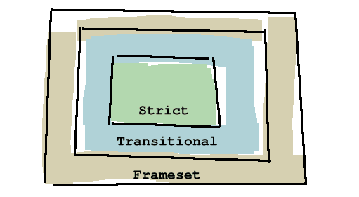 - Frameset: includes support for frames, sub-areas on a single site with parallel display of pages